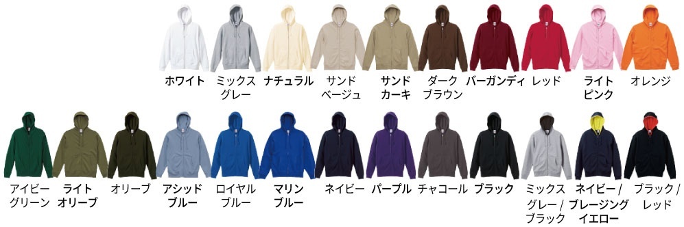 ZIP有りのオリジナルパーカーを作るならオススメモデルです。